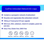 Antioxidant Network™ contains N-Acetylcysteine, a precursor to the formation of Glutathione, a powerful antioxidant recycler. It also contains mixed tocopherols, a family of vitamin E compounds that act as fat-soluble antioxidants, along with Coenzyme Q10, DL-Alpha lipoic acid, green tea and zinc to provide a quick response to the first signs of free radical activity, protecting your cells from oxidative damage.