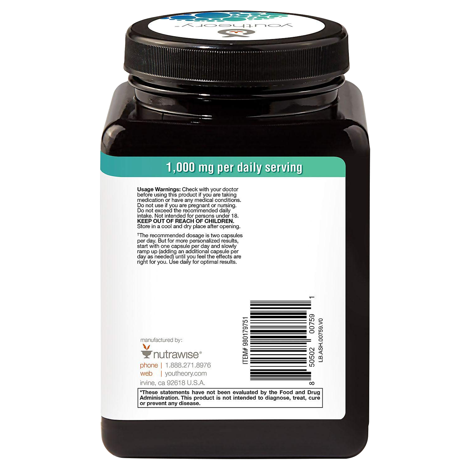 Youtheory Ashwagandha 1000mg: Promotes calm and clarity Ashwagandha (Indian ginseng) is nature antidote to modern stress. This time-tested botanical greatly improves the body response to physical and mental stressors, while boosting stamina, endurance, cognitive health and overall well-being. Promotes calm and clarity with clinically-supported KSM-66 helps reduce stress Helps maintain normal cortisol levels. Boosts mental & physical performance.