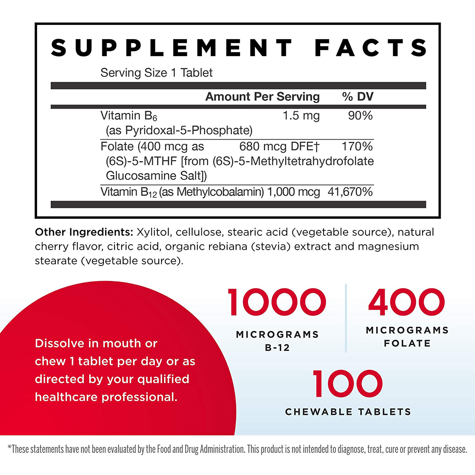1000 mcg, 100 Chewable Tablets