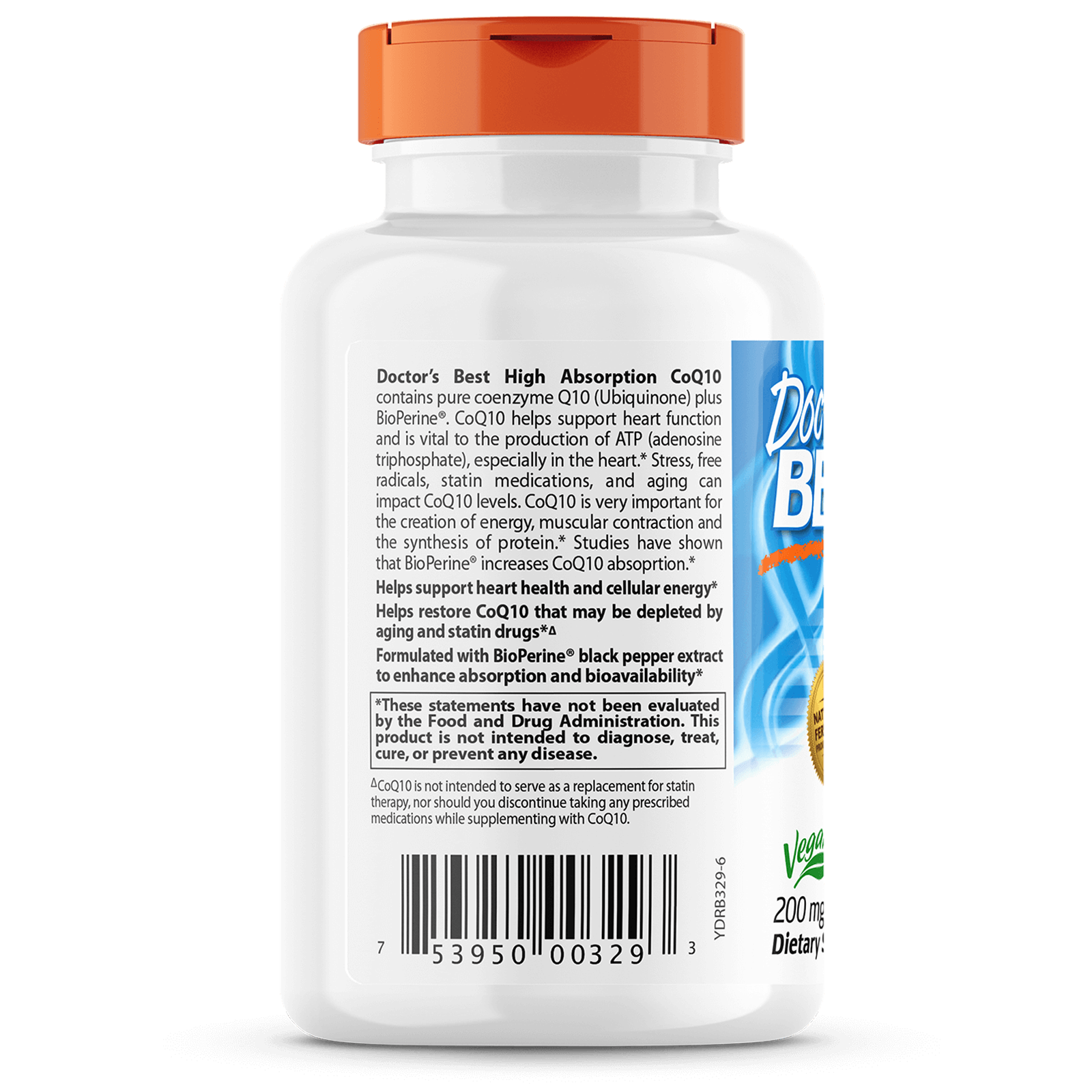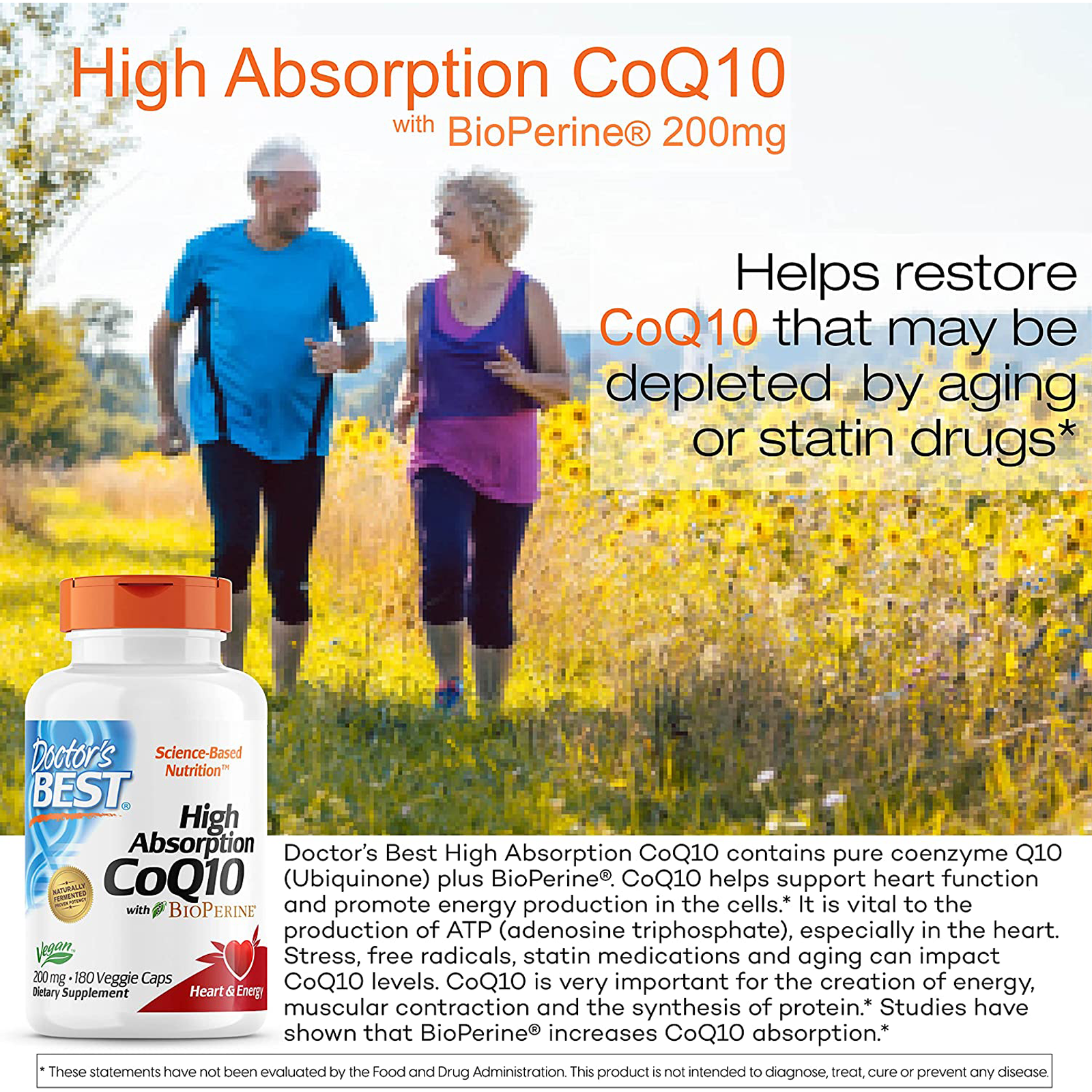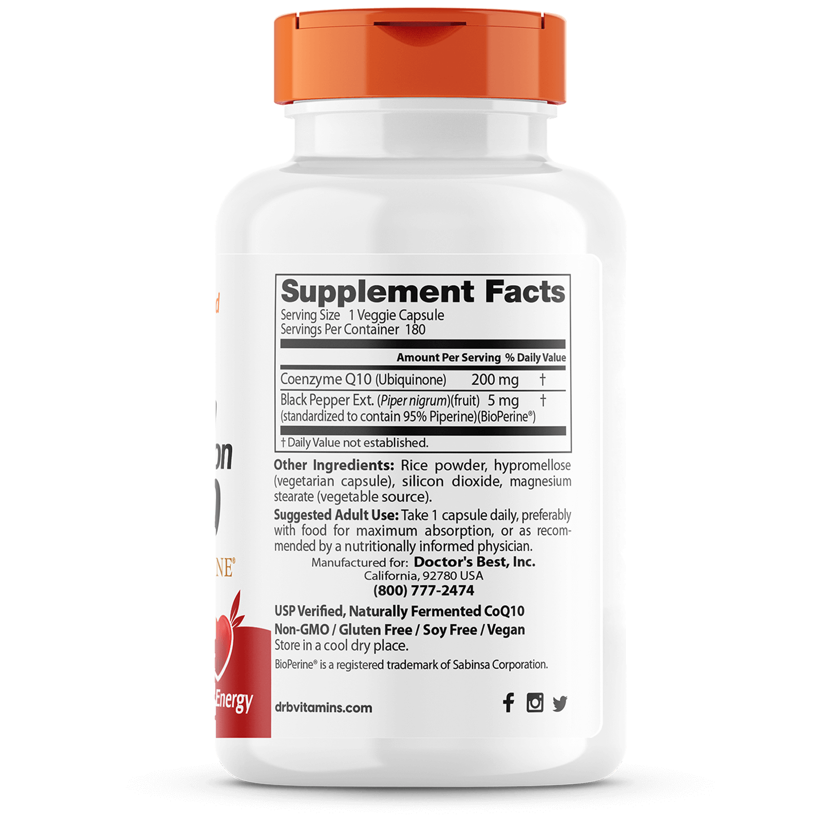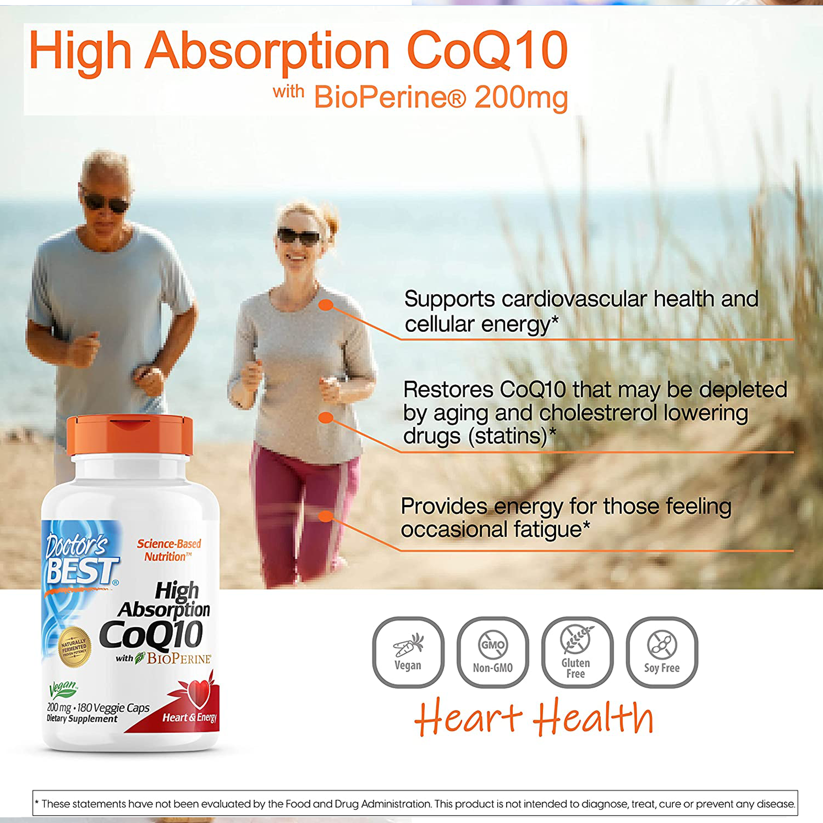 Doctor’s Best High Absorption CoQ10 with BioPerine, Non-GMO, Gluten Free, Naturally Fermented, Vegan, Soy Free, Heart Health and Energy Production, 200 mg, 180 Veggie Caps.