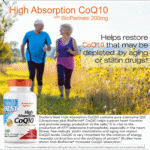 Doctor’s Best High Absorption CoQ10 contains pure coenzyme Q10 (Ubiquinone) plus BioPerine®. CoQ10 helps support heart function and is vital to the production of ATP (adenosine triphosphate), especially in the heart. Stress, free radicals, statin medications, and aging can impact CoQ10 levels. CoQ10 is very important for the creation of energy, muscular contraction and the synthesis of protein. Studies have shown that BioPerine® increases CoQ10 absorption.