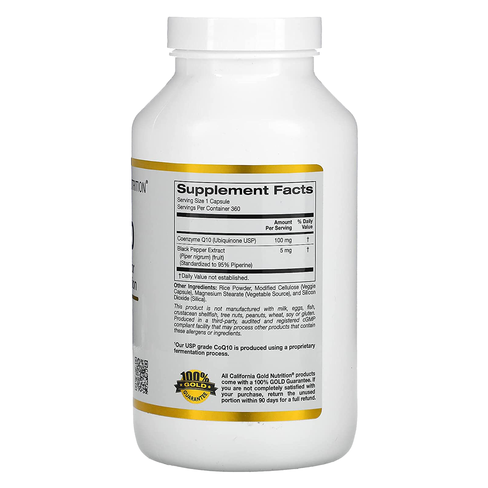 California Gold Nutrition CoQ10 features USP Grade Ubiquinone (CoQ10) that is produced using a proprietary fermentation process and is contained within TapiOgels™ Tapioca Veggie Softgels. When taken as directed, this provides approximately a 1-year supply.