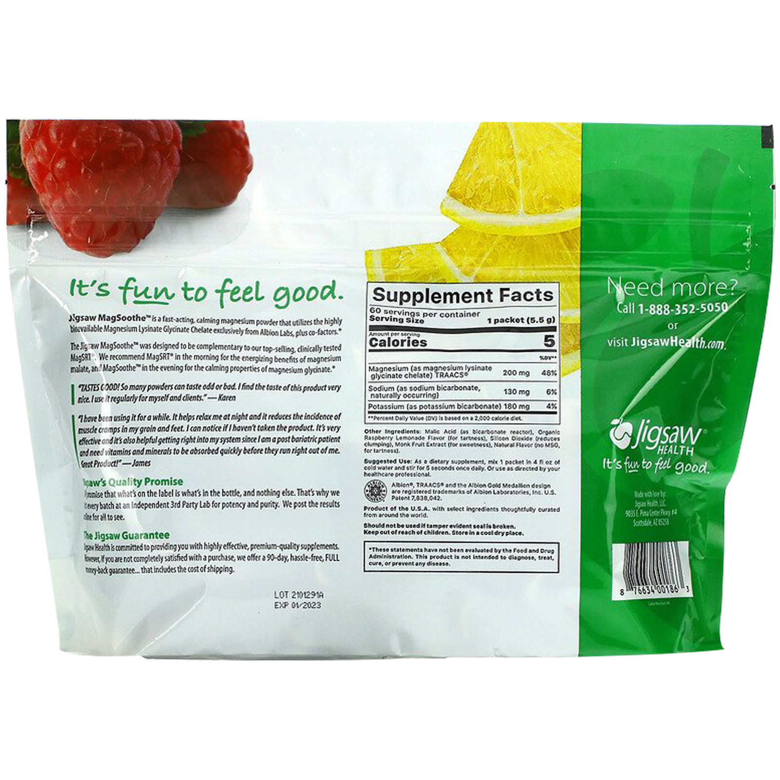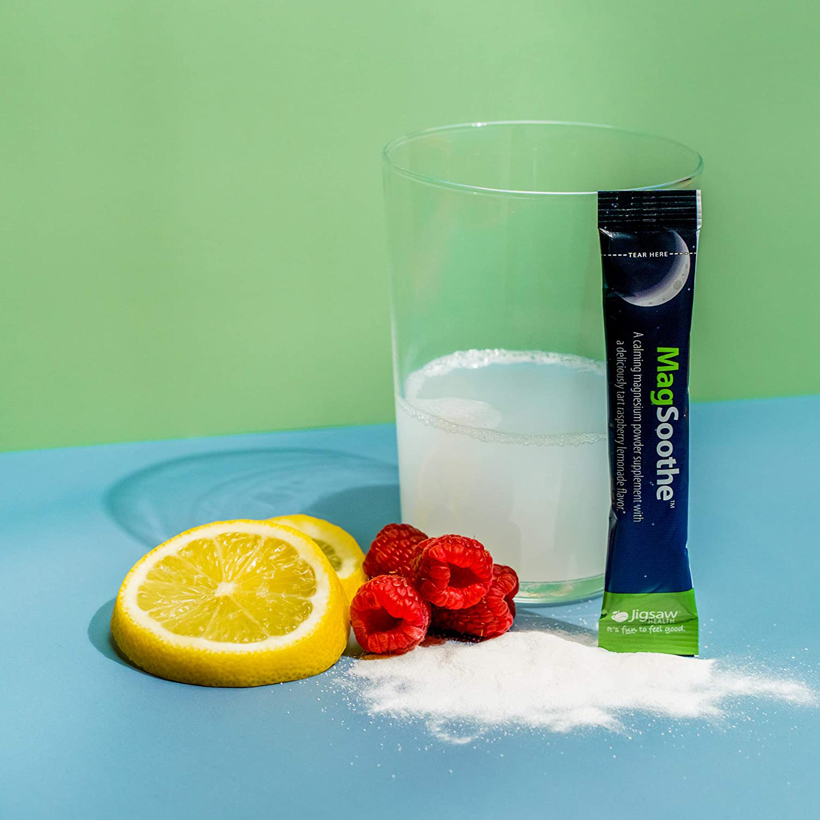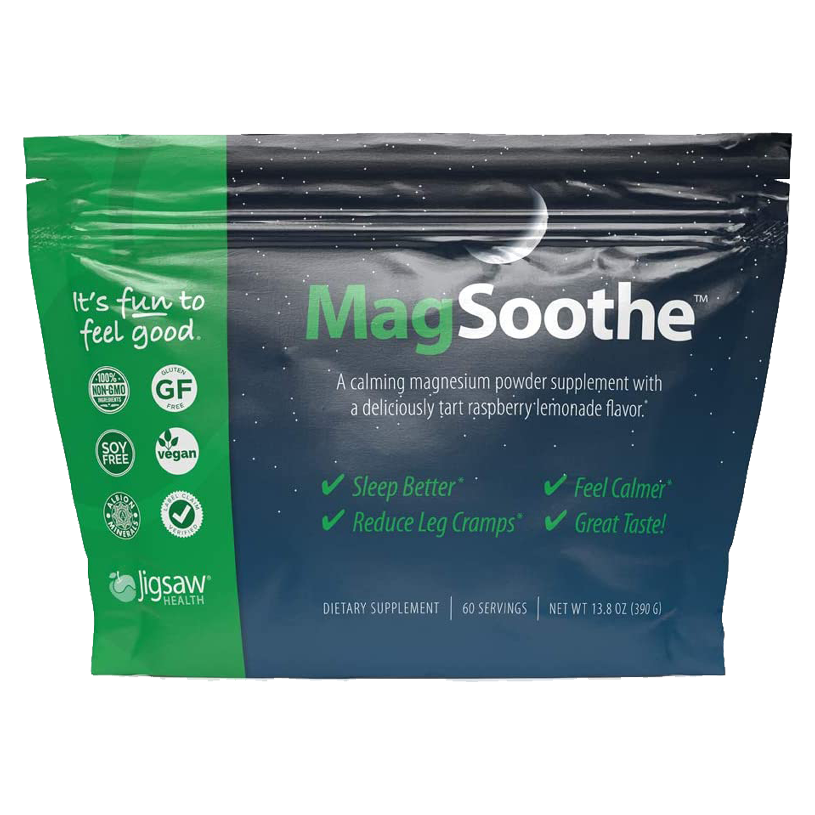 Jigsaw MagSoothe™ is a premium, fast-acting, calming Magnesium Glycinate powder supplement that helps relax your legs, muscles, and brain for better sleep.