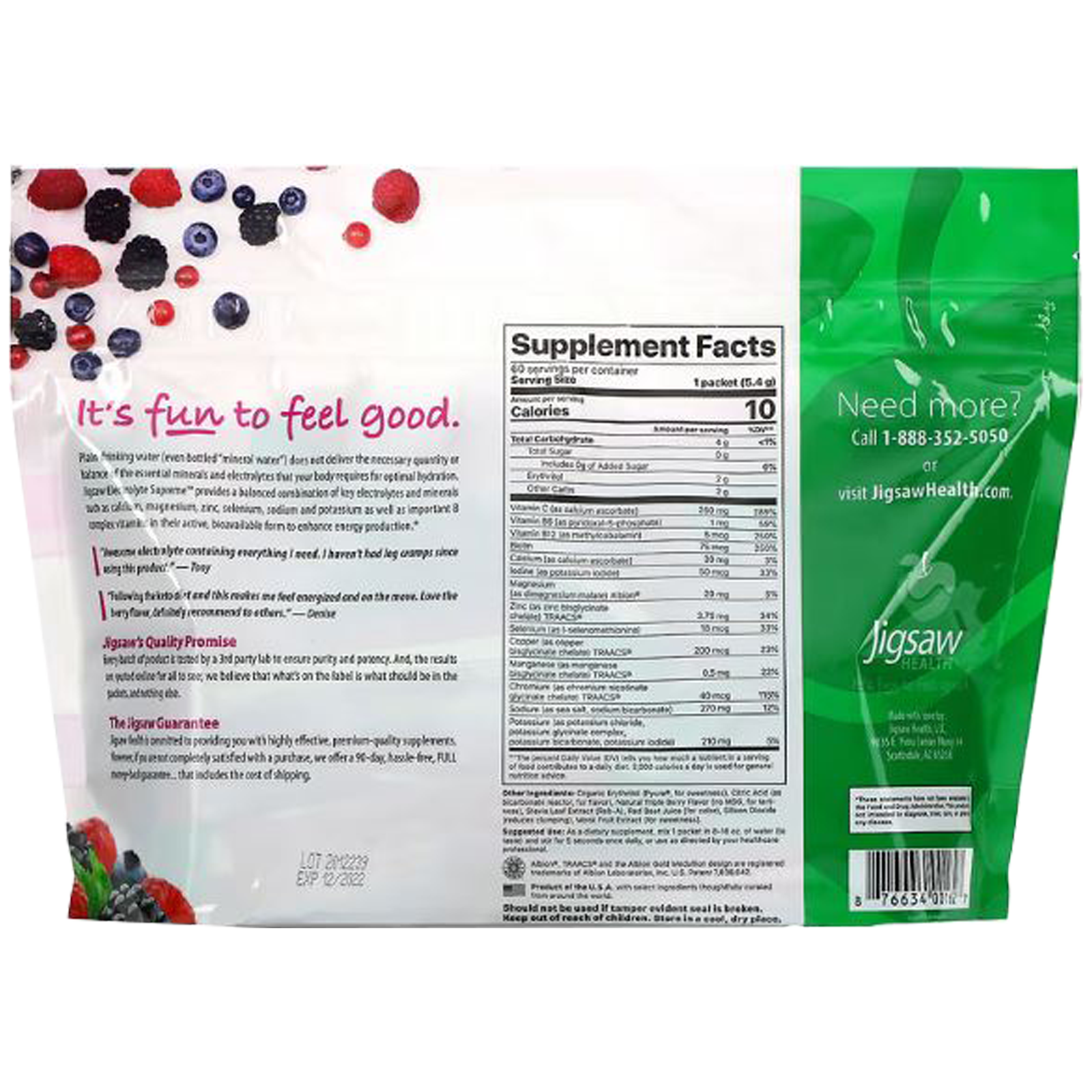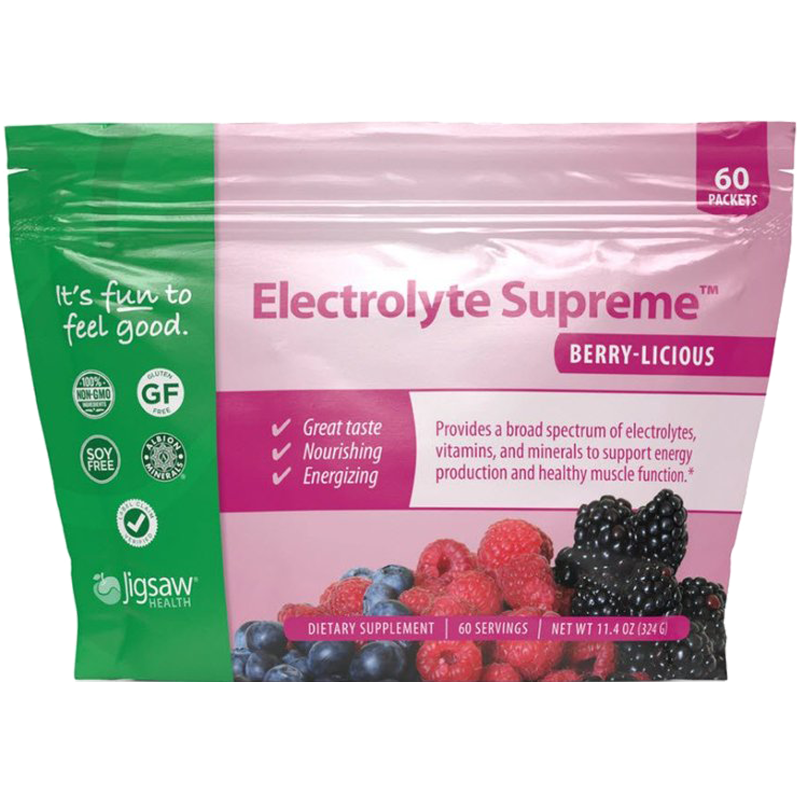 Plain drinking water (even bottled ¨mineral water¨) does not deliver the necessary quantity or balance of the essential minerals and electrolytes that your body requires for optimal hydration. Jigsaw Electrolyte Supreme™provides a balanced combination of key electrolytes and minerals such as calcium, magnesium, zinc, selenium, sodium and potassium as well as important B complex vitamins in their active, bioavailable form to enhance energy production.