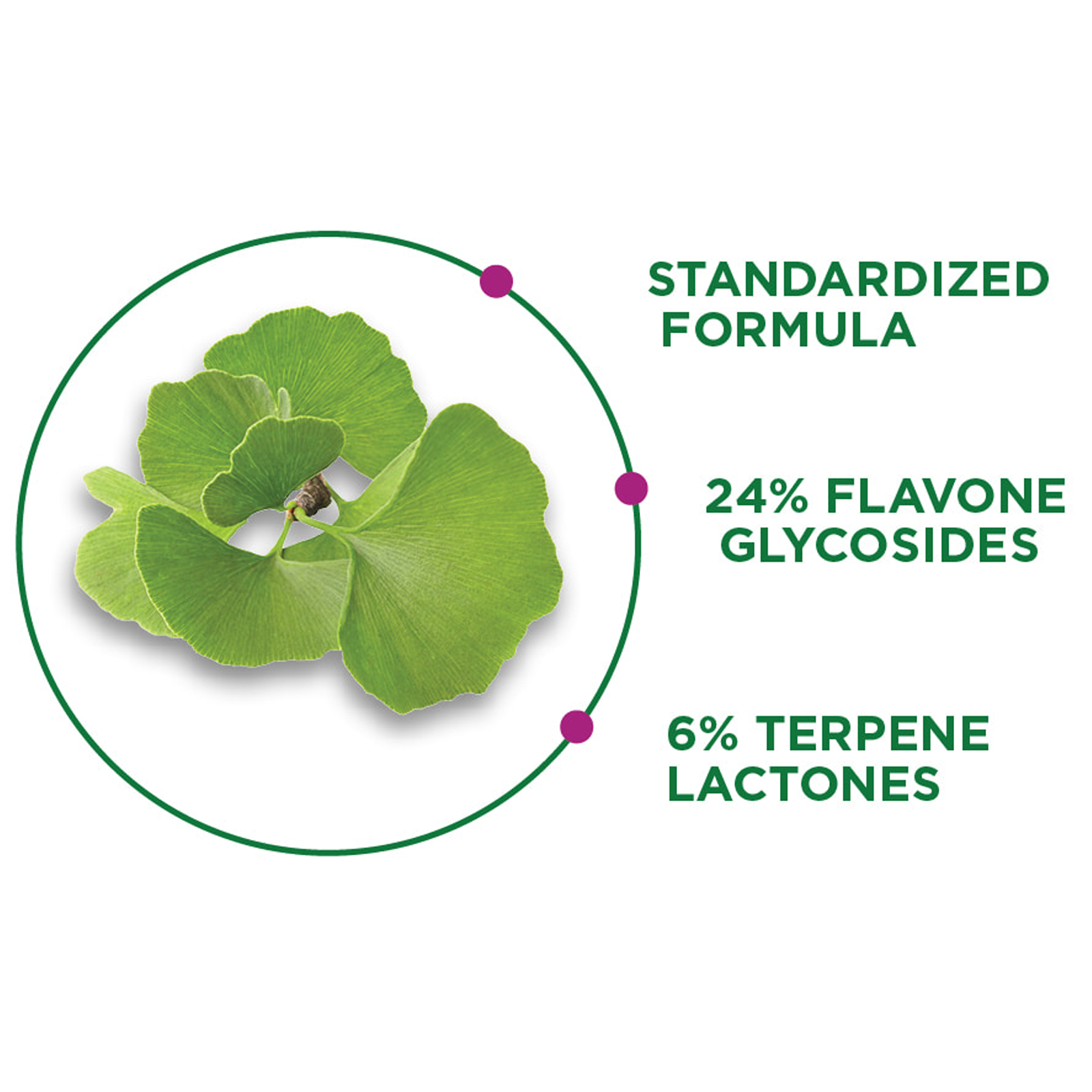 The leaves of the Ginkgo biloba tree are rich in phytonutrients. Plants produce phytonutrients for protection against photosynthetic stress, pathogens, and other threats. Phytonutrients can have a beneficial effect on human health as well. Our formula is standardized to contain 24% Ginkgo flavone glycosides and 6% terpene lactones, the active constituents found in the Ginkgo leaves. Supplementing with trunature® Ginkgo Biloba is an easy way to incorporate this beneficial herb into your daily diet.