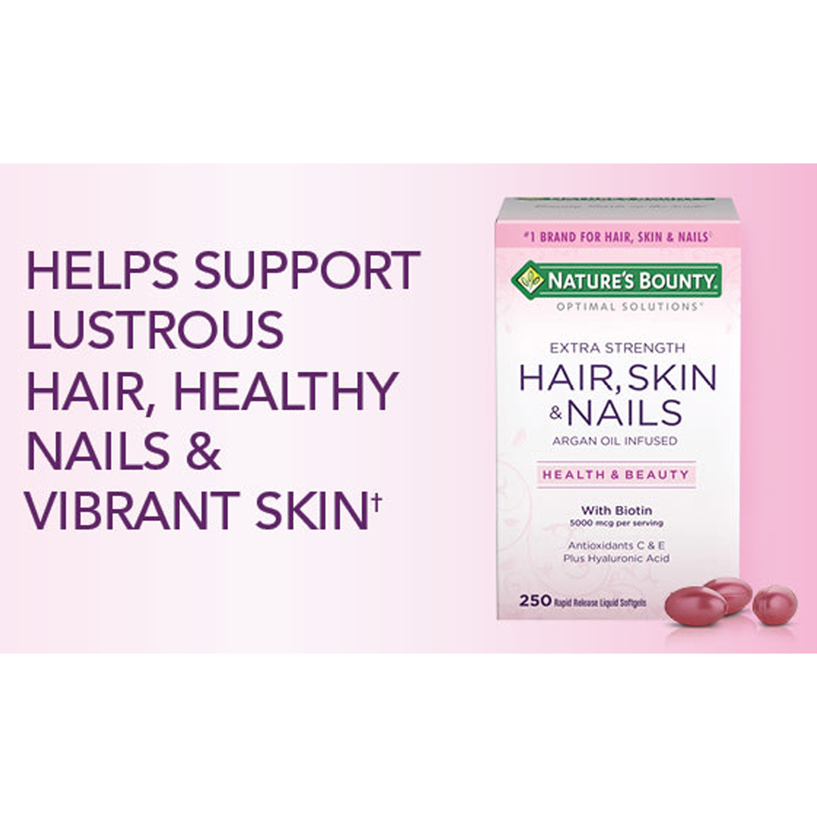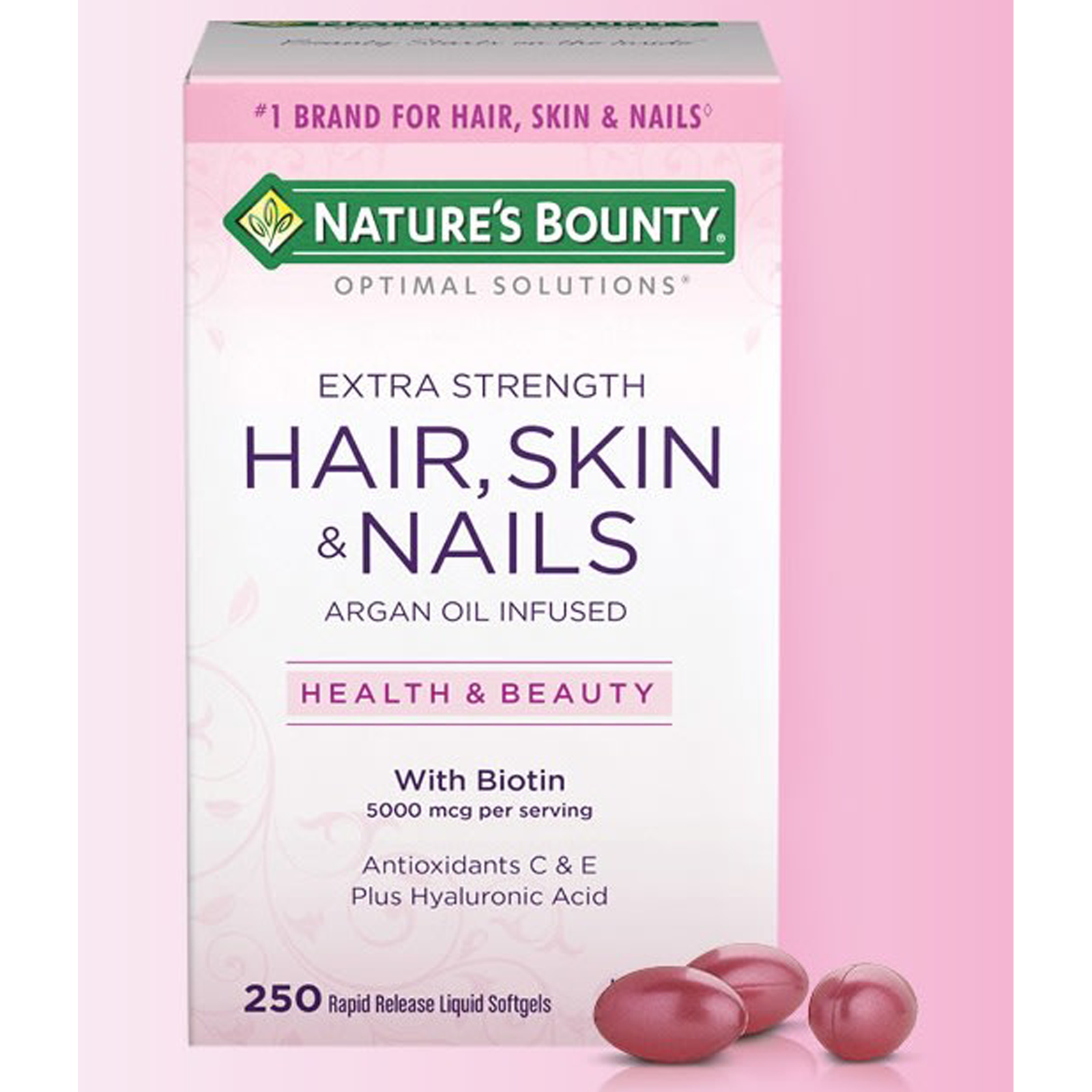 Being healthy is always beautiful. With Nature’s Bounty® Optimal Solutions® Extra Strength Hair, Skin & Nails formula with Argan Oil you’ll look good and feel great! It contains just the right balance of nutrients to support lustrous hair, healthy nails and vibrant skin.