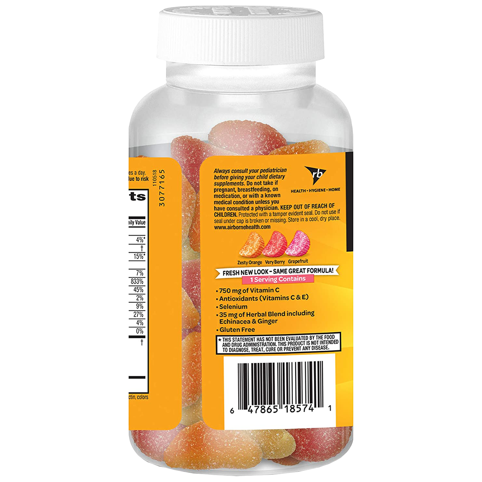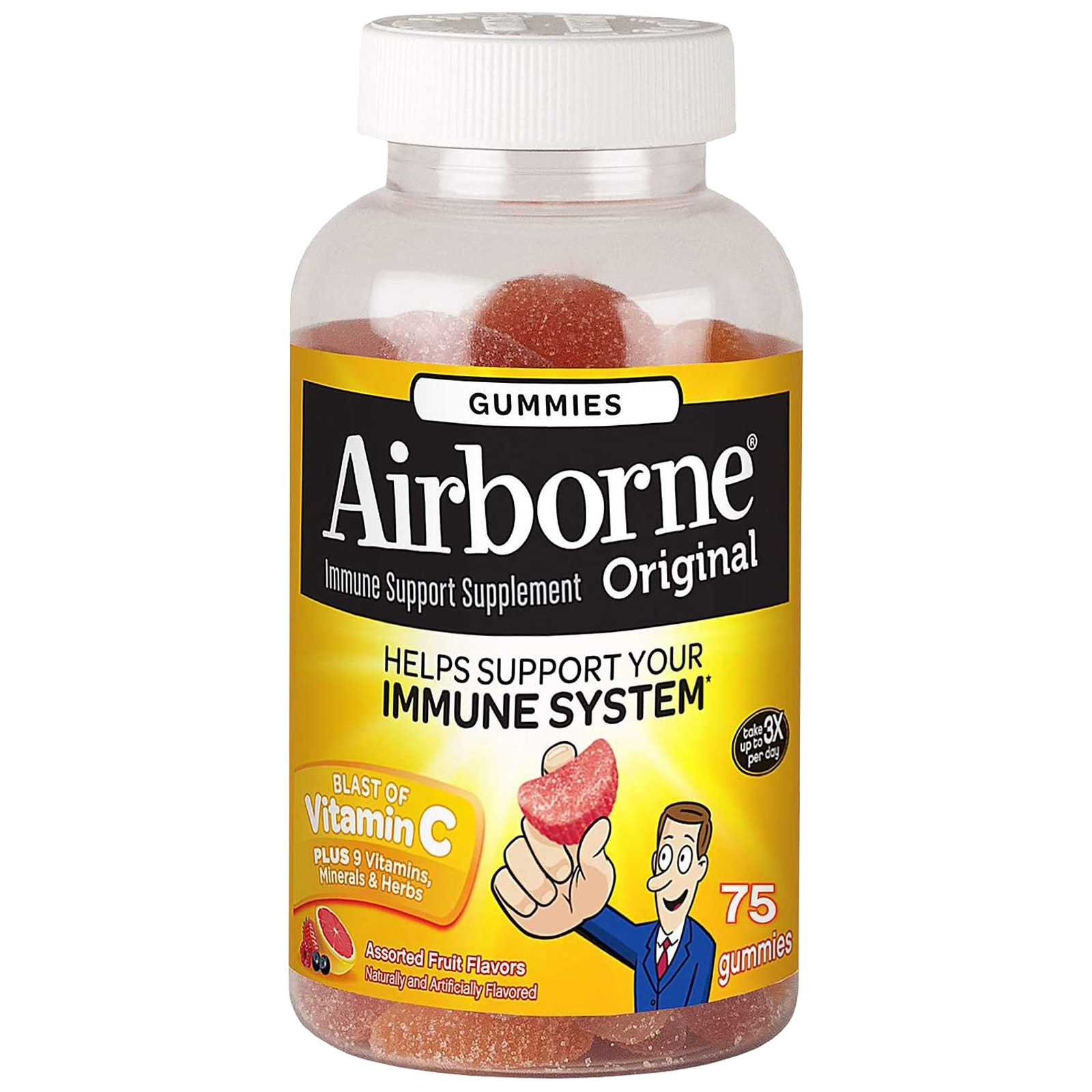 Airborne Original Gummies provides immune support in a great-tasting and easy-to-take form. Each serving (3) gummies delivers 750 mg of Vitamin C and is high in antioxidants (Vitamins C & E), and is an excellent source of Selenium. Also contains a proprietary herbal blend with Echinacea & Ginger. Airborne Original Gummies help support your immune system.* Airborne is the #1 Immune Support Gummy, Effervescent & Chewable Brand.¹