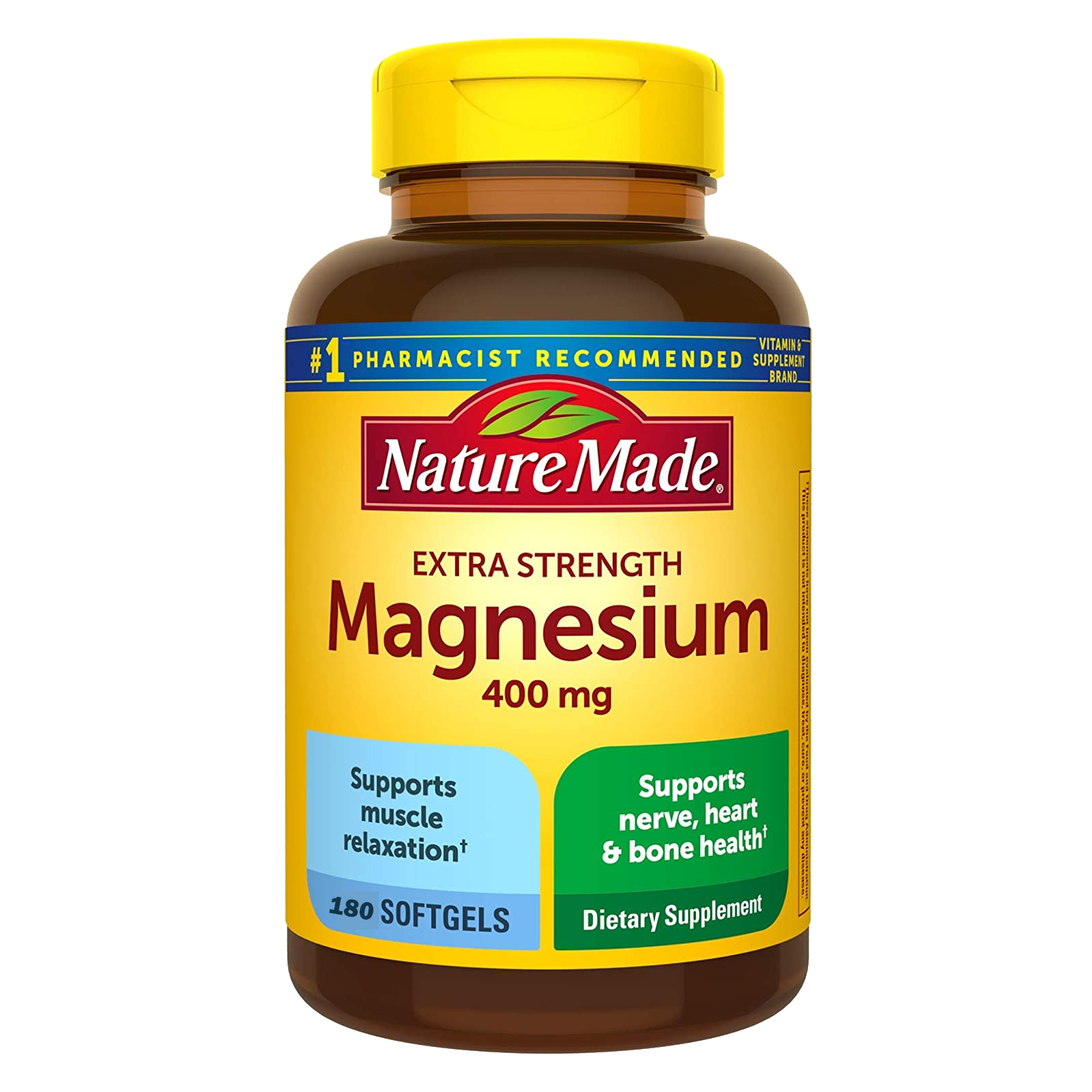 - Muscle support supplement: contains one 110 count bottle of Nature Made Extra Strength Magnesium 400 mg Softgels for a 110-day supply