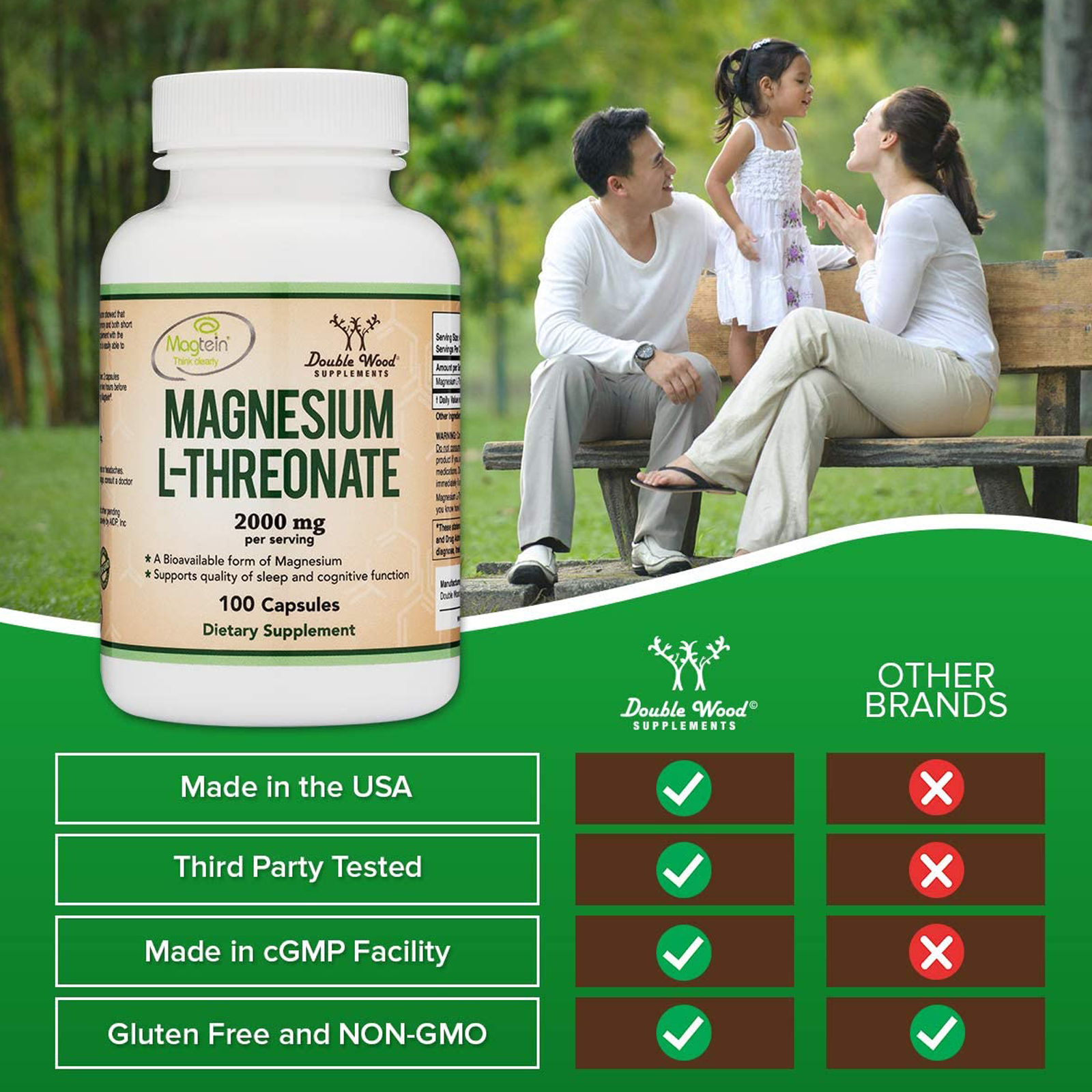 - Non-Gmo and Gluten Free: Double Wood’s Magtein is gluten free and Non-GMO