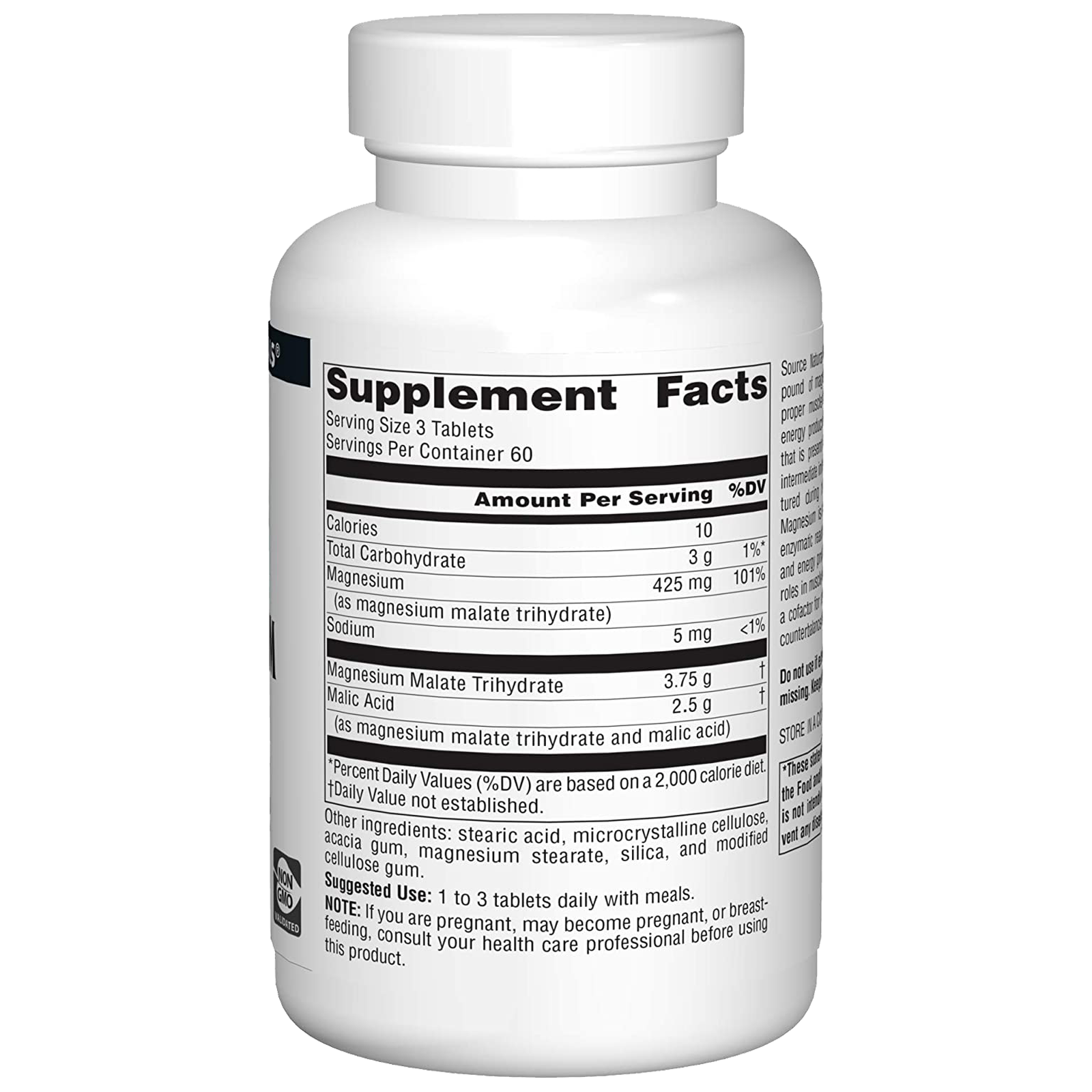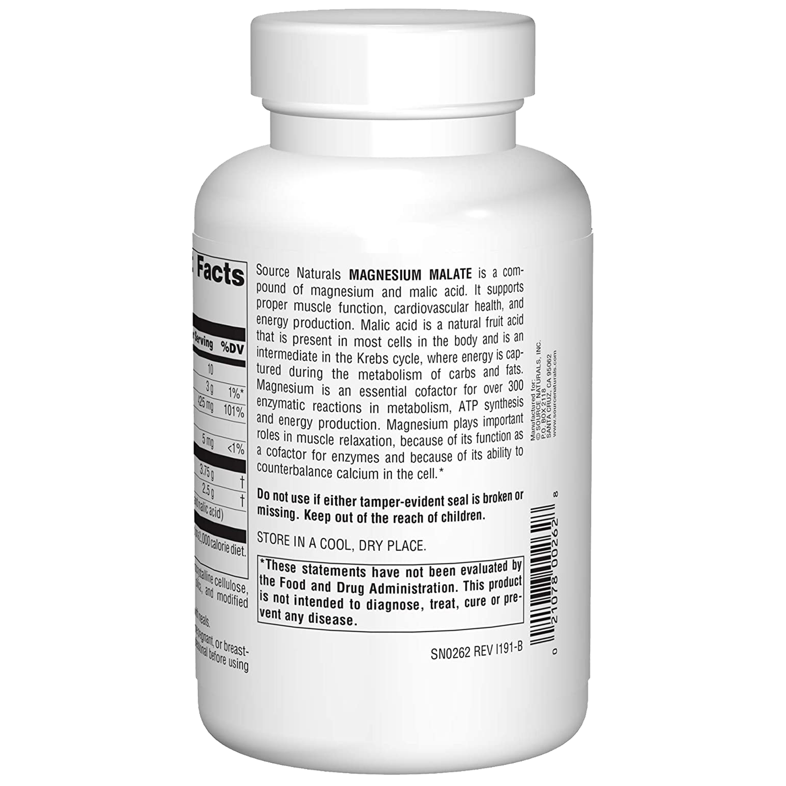 - Source Naturals Magnesium Malate is a compound of magnesium and malic acid. It supports proper muscle function, cardiovascular health, and energy production.