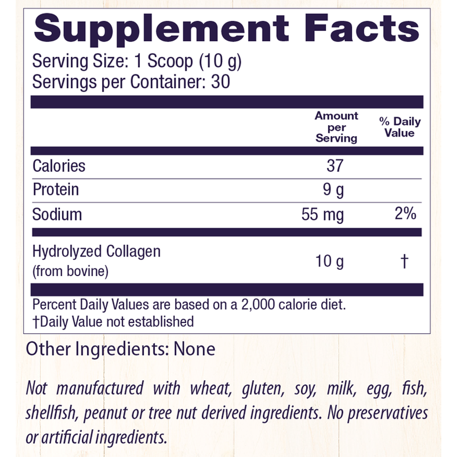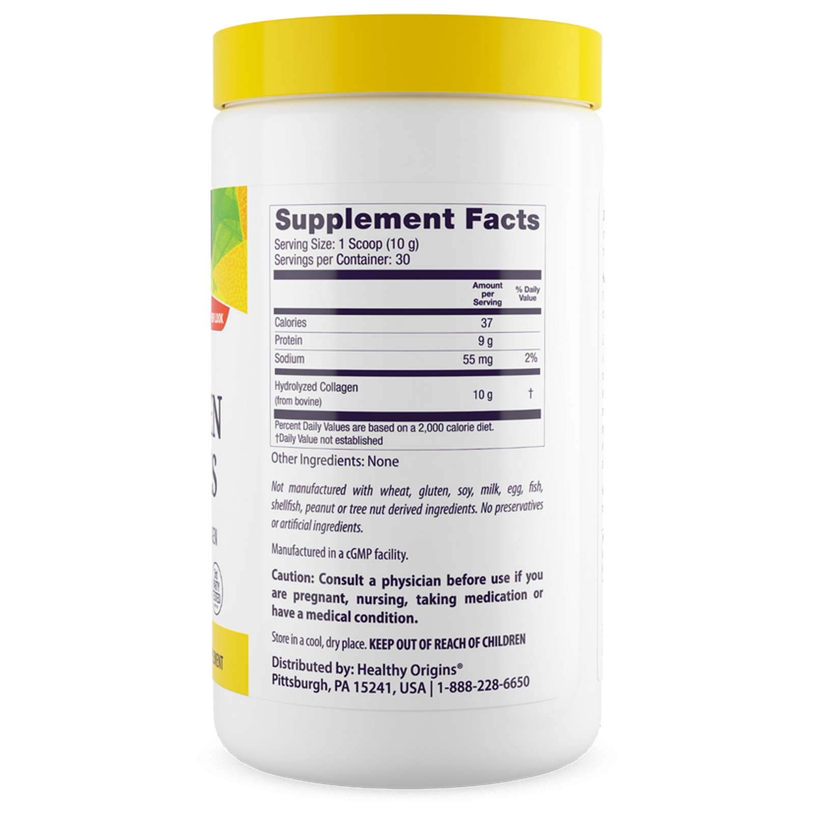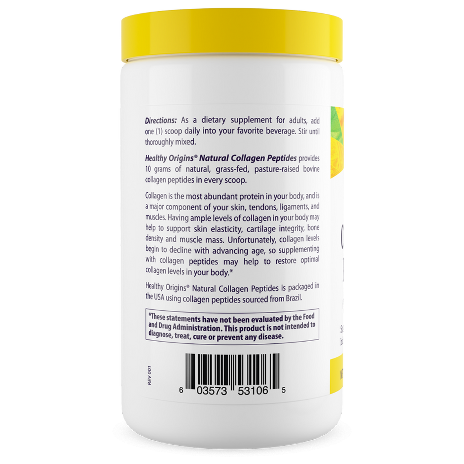 Healthy Origins Natural collagen Peptides provides 10 grams of natural grass-fed, pasture-raised bovine collagen peptides in every scoop.