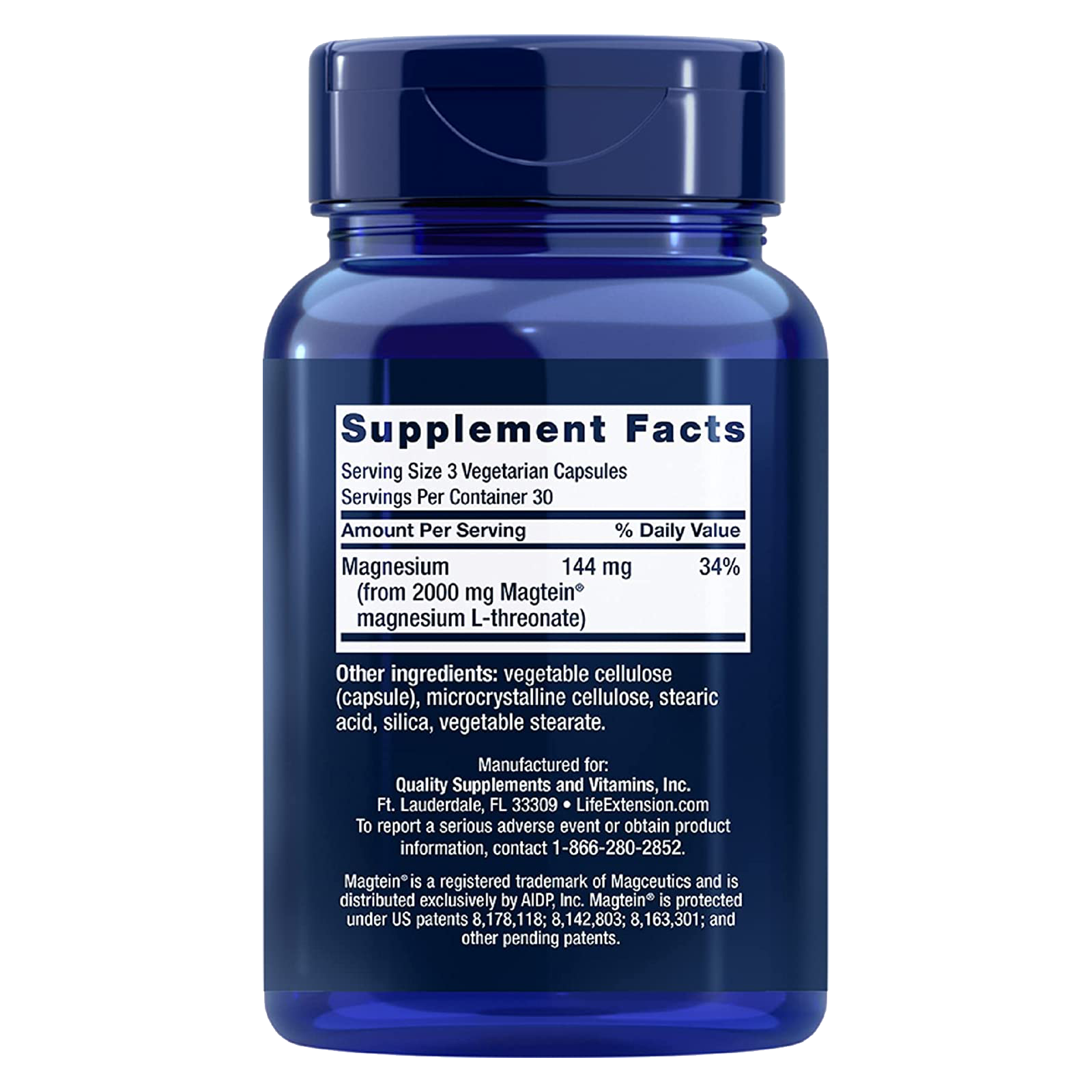 A single bottle of Neuro-Mag® Magnesium L-Threonate contains 90 vegetarian capsules, enough for a one-month supply. The suggested daily dose of three capsules provides 2,000 mg of magnesium L-threonate, the preferred form of magnesium for supporting memory and maintaining cognitive health.