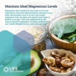 Magnesium is essential for more than 300 biochemical reactions in the body and plays an important role in the nervous system and brain. Unfortunately, most Americans don’t get enough magnesium from their diet, and suboptimal magnesium levels increase with age.