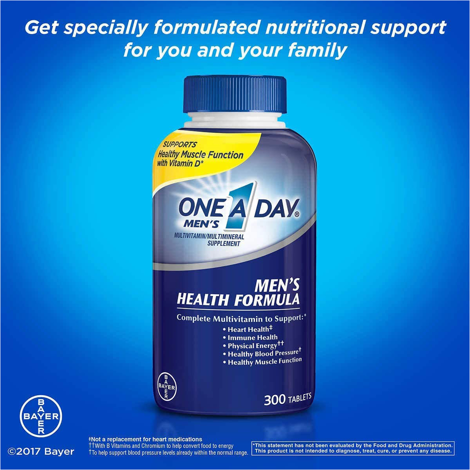 One A Day Men’s 50+ Healthy Advantage Multivitamin offers a wide variety of key nutrients in an easy to take, daily tablet Formulated to support: heart health, healthy blood pressure, immune health, eye health, and physical energy by helping convert food to fuel Helps support healthy brain function with B vitamins Men over the age of 50 should take one tablet daily with food One A Day Men’s 50+ Healthy Advantage Multivitamin are free of gluten, wheat, dairy, artificial flavors, and artificial sweeteners.