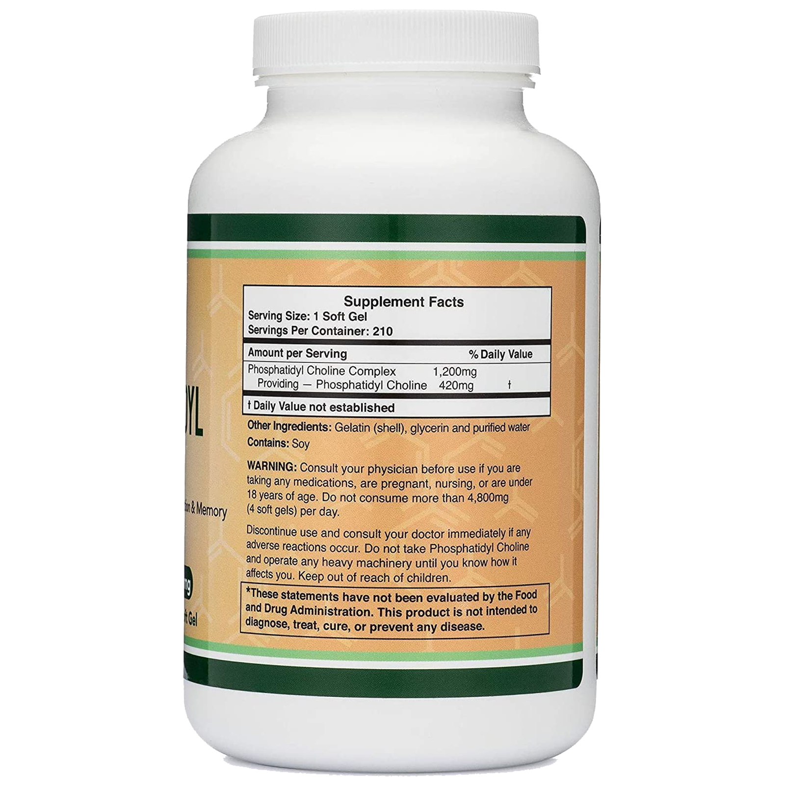 Phosphatidylcholine is a key component of cells. Not only is it found in every cell within the human body but it is vital to cell membrane health and function. Supplementing with additional PC may provide a number of benefits. Increased PC levels help support neuron health, cognitive function and help keep the brain healthy as it ages. It also increases levels of choline and acetylcholine in the brain. Many consider Phos Choline to be an enhanced version of sunflower and soy lecithin as it is derived from lecithin. It’s effects are also comparable to Alpha GPC choline in the sense that it helps boost levels of Acetylcholine in the brain. Our Phosphatidylcholine softgels are gluten free, non-gmo, and are Manufactured and tested right here in the USA. Product by Doublewood.