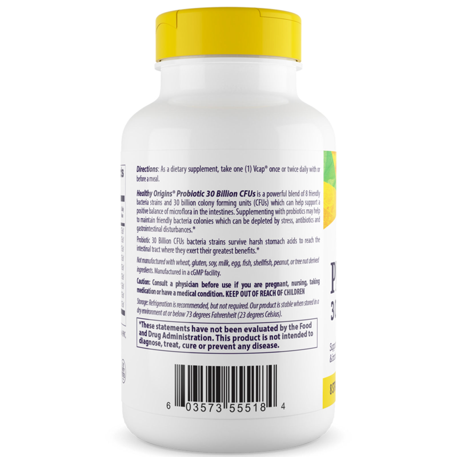 Healthy Origins® Probiotic 30 Billion CFUs is a powerful blend of 8 friendly bacteria strains and 30 billion colony forming units (CFUs) which can help support a positive balance of microflora in the intestines. Supplementing with probiotics may help maintain friendly bacteria colonies which can be depleted by stress, antibiotics, and gastrointestinal disturbances. Healthy Origins® Probiotic 30 Billion CFU’s bacteria strains survive harsh stomach acids to reach the intestinal tract where they exert their greatest benefits. Probiotic 30 Billion CFU’s is stable while refrigerated or stored at room temperature (~70º).