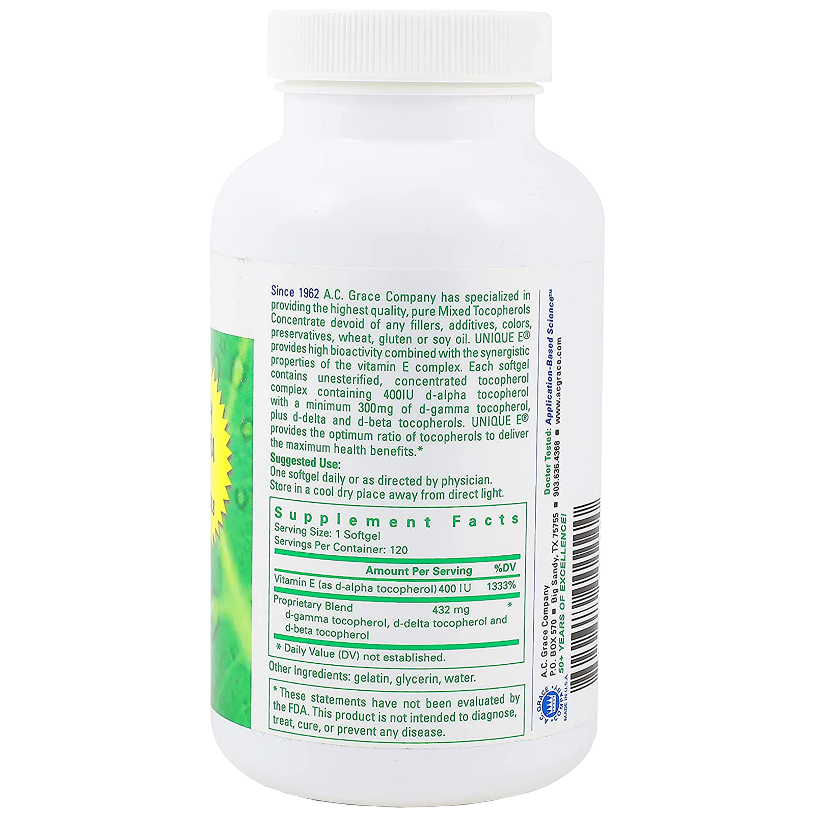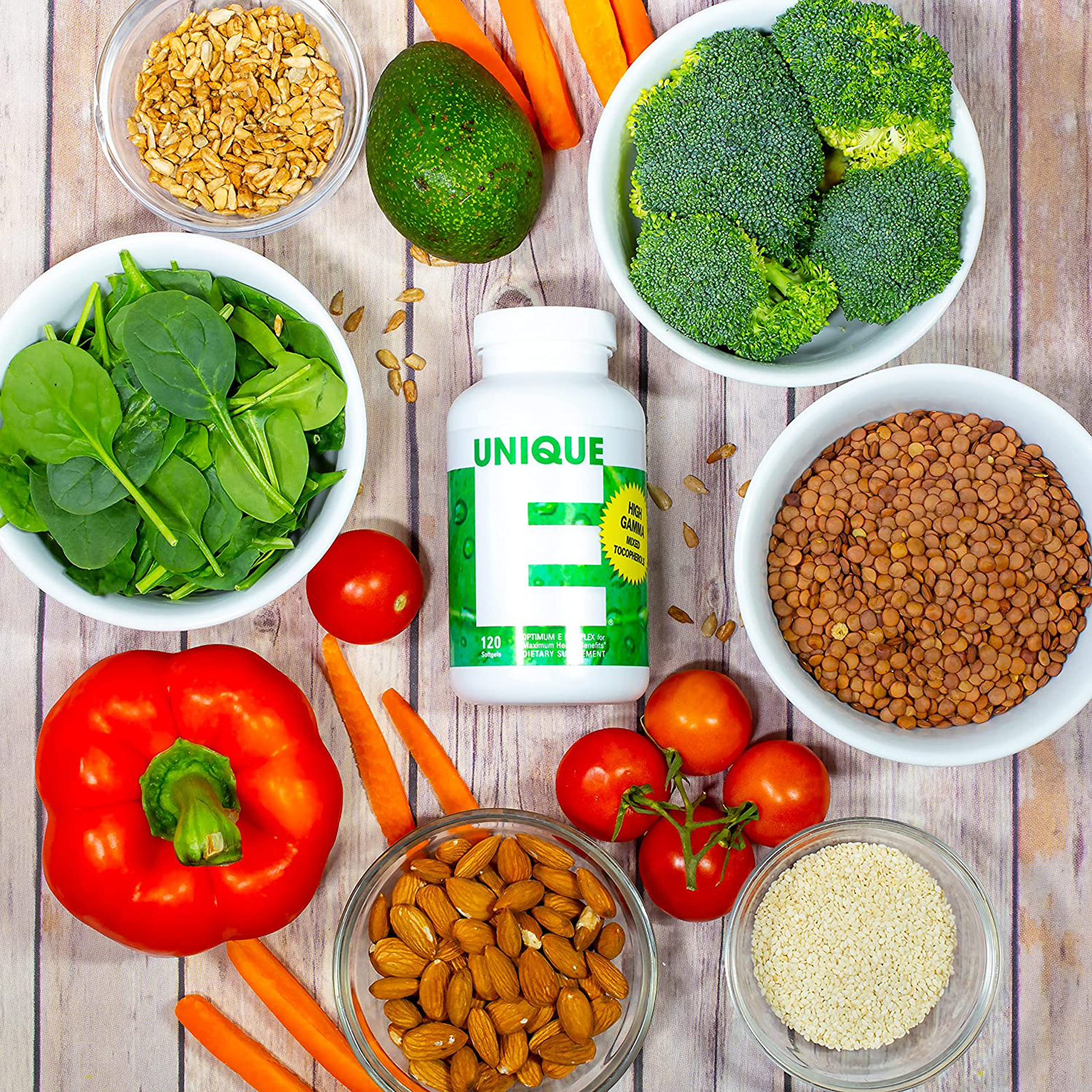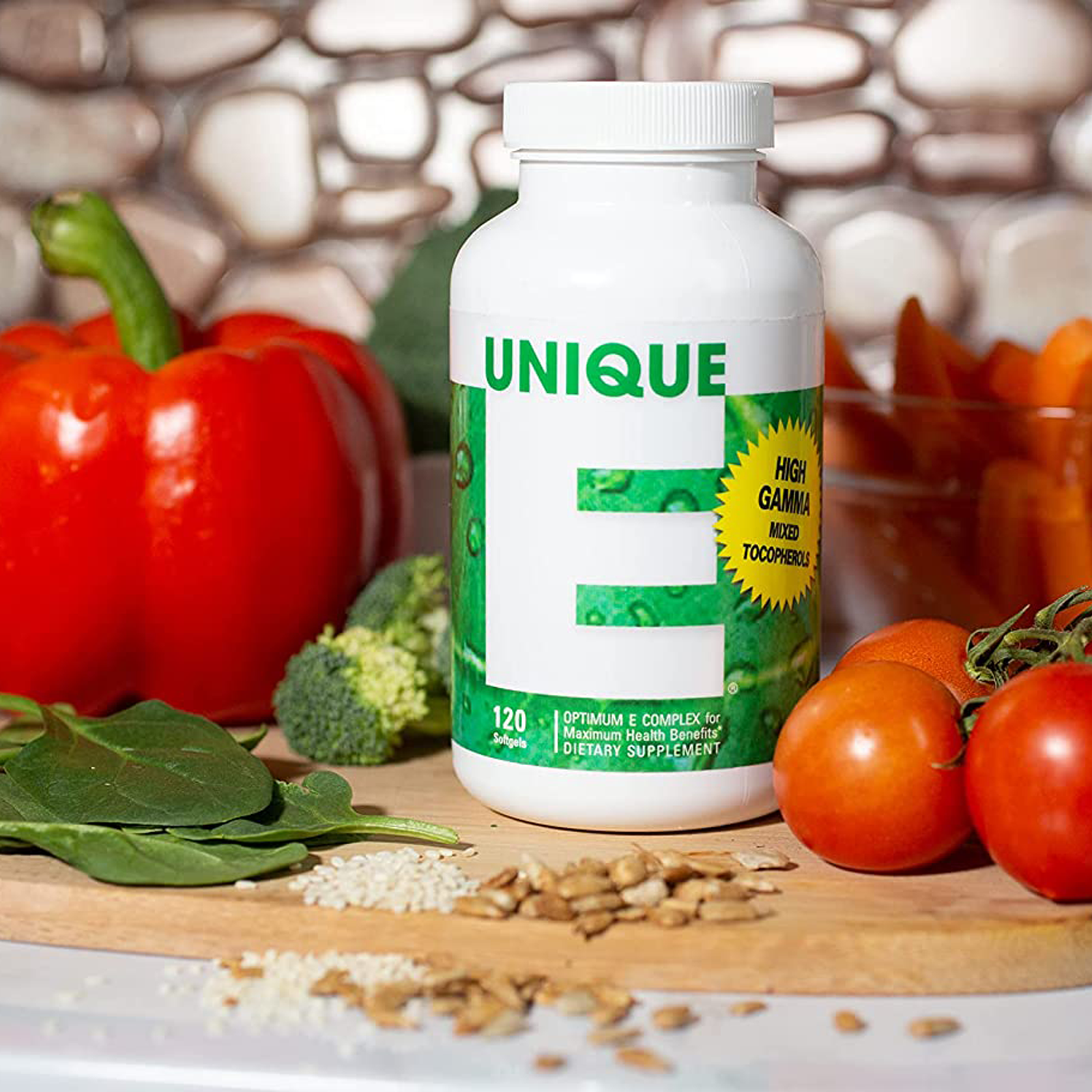 UNIQUE E® provides high bioactivity combined with the synergistic properties of the vitamin E complex. Each softgel contains unesterified, concentrated tocopherol complex containing 400 IU d-alpha tocopherol with a minimum 300 mg of d-gamma tocopherol, plus d-delta and d-beta tocopherols. UNIQUE-E® provides the optimum ratio of tocopherols to deliver the maximum health benefits.