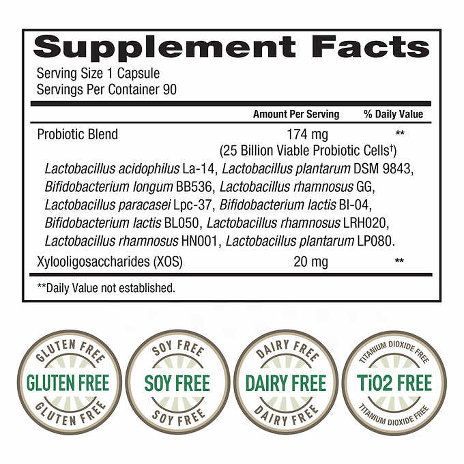 • Is gluten, soy, dairy, gelatin & titanium dioxide FREE