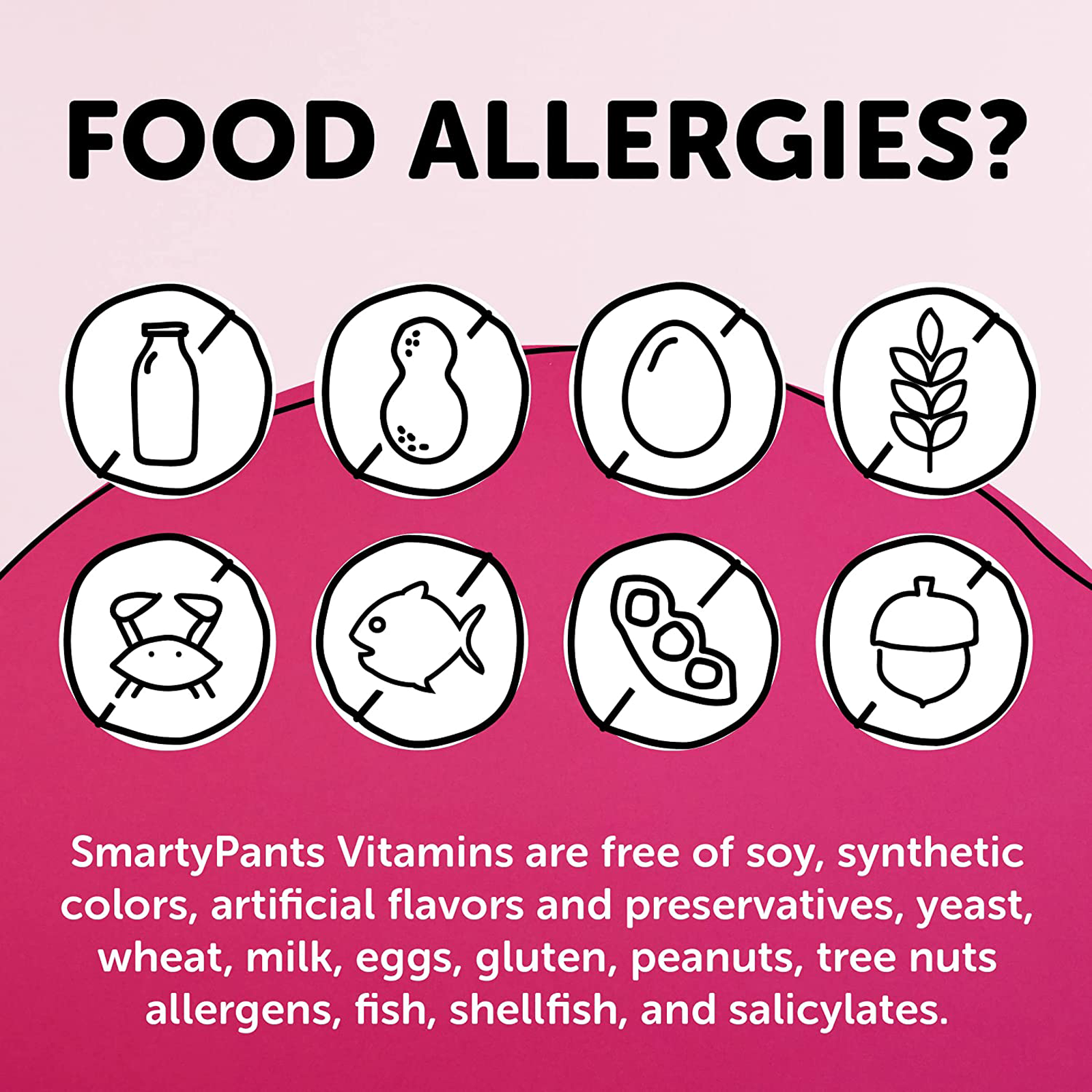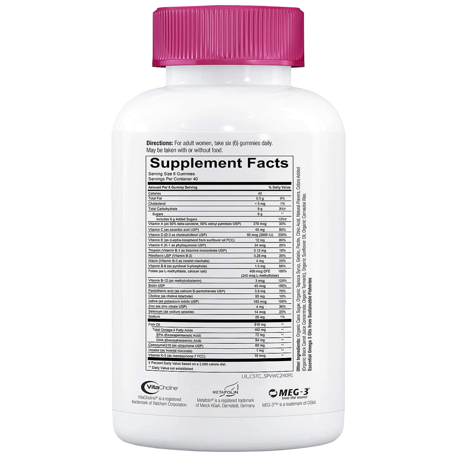 - Smarty-pants Women’s Complete MULTIVITAMIN: Non-GMO, multivitamin plus Omega 3, folate, Vitamin D3, Vitamin B, CoQ10, 240 adult Gummies